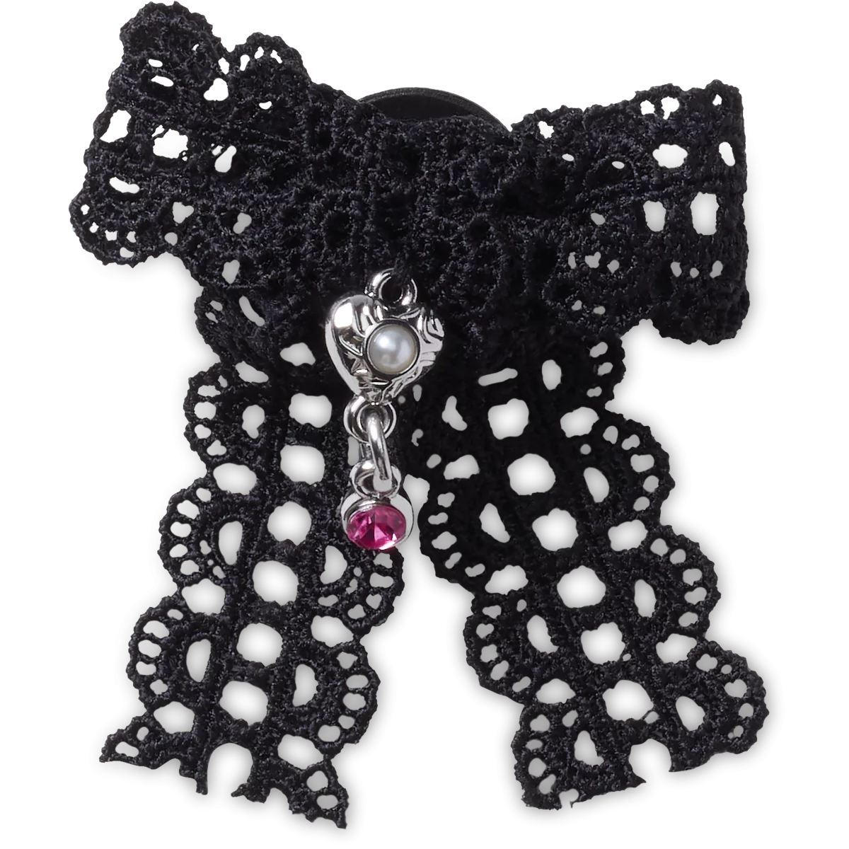Black Lace Bow Silver Heart